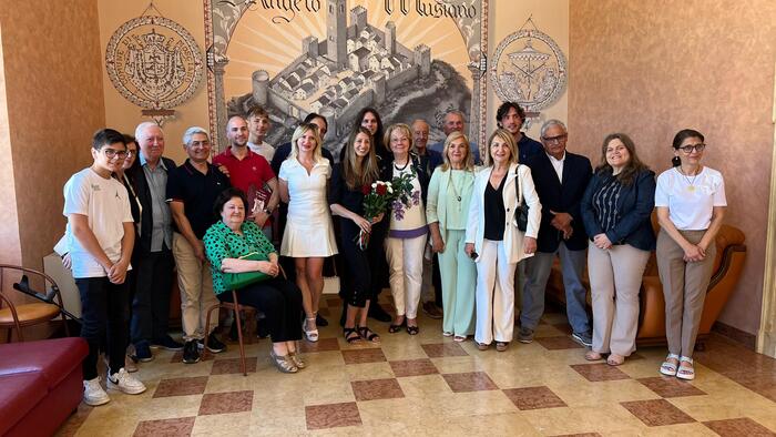 Grazie anche all’impegno della Pro Loco Musiano e del Gal ‘Terreverdi Teramane’, Italia ha trovato parenti di sua nonna paterna, Italia Di Donato, da cui lei stessa prende il nome. Emozionante, questa mattina, l’accoglienza in Comune.