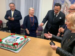 Presidente Berlusconi nel Duomo di Milano. A fine Messa gli ospiti si sono riuniti in una sala, per ricordare e festeggiare un grande leader, essere umano, uomo di pace che amava l’Italia e la sua gente. Sono stati letti molti messaggi ricevuti anche via telefono di persone impossibilitate ad essere presenti e rimaste bloccate dal maltempo. Tantissimi coordinatori e amici di Forza Italia dal Connecticut, Pennsylvania, Massachusetts e New Jersey, On.le Fucsia Nissoli Fitzgerald coordinatrice Nord e Centro America, messaggi di Presidenti d’organizzazioni,e dignitari tra cui il Console Generale Di Michele. Il messaggio di vicinanza del Responsabile del Dipartimento Italiani nel Mondo di Forza Italia On.le Salvatore De Meo, molto apprezzato, è stato letto da Giuliana Ridolfi che fortemente ha voluto questa celebrazione e nonostante tutti gli impedimenti, contrattempi e diluvio, con la grande