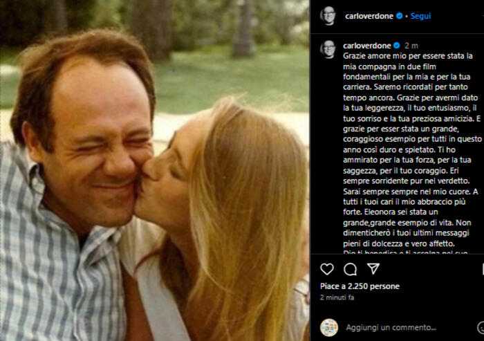 Il primo con Angelo Rizzoli, sposato nel 1979. L’anno dopo è nato Andrea che ha pubblicato a gennaio 2025 il libro dedicato alla madre e intitolato “Non ci sono buone notizie. L’anno più bello di mia madre, nonostante tutto”. La coppia si separa nel 1984 quando l’editore viene travolto dallo scandalo P2 e arrestato. In seguito al divorzio, Giorgi si lega sentimentalmente a Massimo Ciavarro, conosciuto sul set di “Sapore di mare 2”. Nel 1991 nasce Paolo e nel 1993 la coppia convola a nozze. Matrimonio che dura fino al 1996, anche se l’attore non ha mai abbandonato l’ex. Anzi, durante la malattia, è stato presente e raccontato l’amicizia rimasta in programmi come Verissimo. Poi, fino al 2007, Eleonora è accanto allo scrittore Andrea De Carlo.