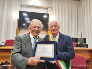 Dopo la consegna della targa, ha preso la parola il consigliere dell`opposizione Archietto Carlo Medici, il quale ha ricordato il suo viaggio da sindaco insieme alla delegazione di Pontinia, per ricevere il Premio Comune dell`Anno, conferito al comune della cittadina dell`Afro Pontino dalla Federezione dei Laziali in Canada, di cui Vittorio e` stato uno dei fondatori e per anni Presidente.
