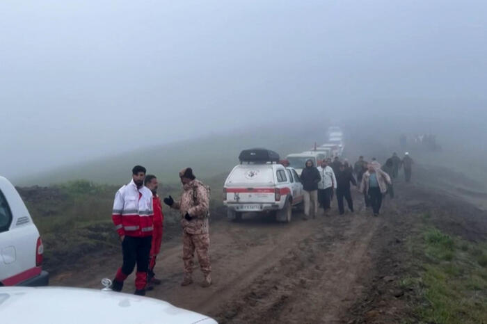 TOPSHOT – Rescue team members search an area near the crash site of a helicopter carrying Iranian President Ebrahim Raisi in Varzaghan, in northwestern Iran, on May 20, 2024. Iranian President Ebrahim Raisi was declared dead on May 20 after rescue teams found his crashed helicopter in a fog-shrouded western mountain region, sparking mourning in the Islamic republic. (Photo by AZIN HAGHIGHI / MOJ News Agency / AFP)