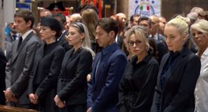 14:59 – Subito dopo l’arrivo del feretro hanno fatto il loro ingresso in piazza del Duomo i figli di Silvio Berlusconi: Marina, Pier Silvio, Barbara, Eleonora e Luigi e la compagna Marta Fascina che si sono messi accanto al feretro che sta facendo il suo ingresso in chiesa.